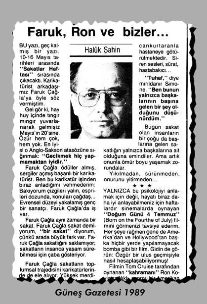 Karikatürist arkadaşımız Faruk Çağla'ya öyle söz vermiştim.